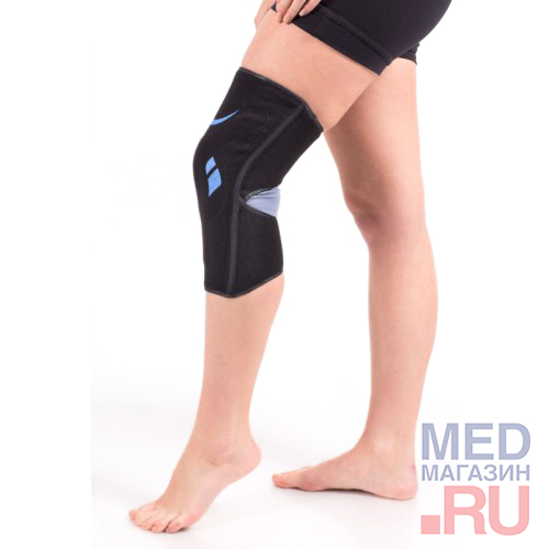 Специальная манжета, которая фиксируется на ноге с помощью спандексов – это мягкий ортез. Кольцо для фиксации надколенника выполнено из силикона.