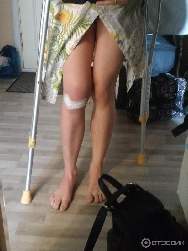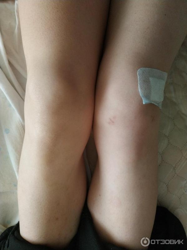 Далее нога с каждым днем становилась все лучше и лучше. Примерно через неделю по моим ощущениям я уже могла бы сама ходить. Отек полностью прошел недели через 2-3. Швы я сняла через 7 дней после артроскопии.