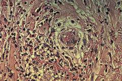 В крови наблюдается повышенное СОЭ, повышенная концентрация С-реактивного белка и фибриногена, тромбоцитоз (увеличение количества тромбоцитов).