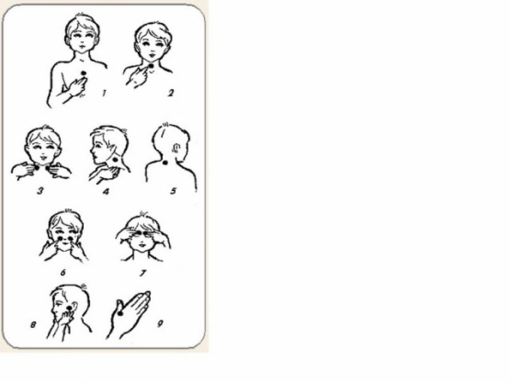 - Мы будем массировать ладони, лицо, уши, шею, верхнюю часть груди.