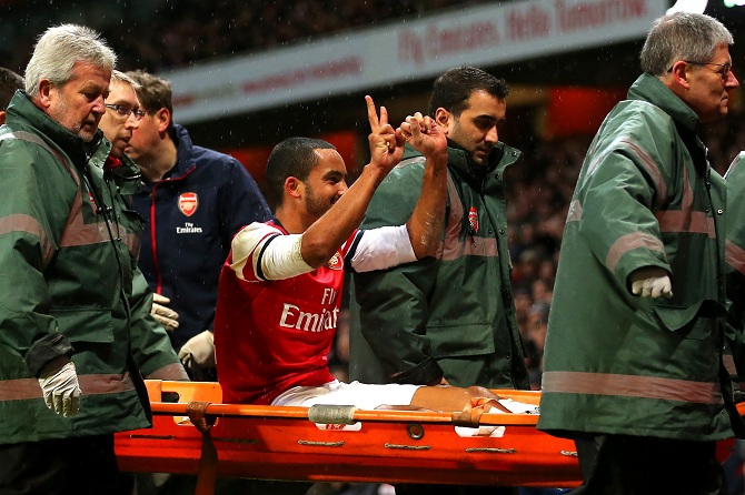 Одному из самых быстрых игроков на планете тоже не повезло с травмами в его профессиональной карьере. Четвёртого января "Арсенал" играл с "Тоттенхэмом" в лондонском дерби в рамках Кубка Англии . После одного из игровых моментов Уолкотт оказался на носилках. Тео получил разрыв "крестов" и выбыл до конца клубного сезона. Из-за этого повреждения он пропустил долгожданный чемпионат мира, второй подряд. Пожелаем успехов и здоровья английскому скоростному игроку "Арсенала"!