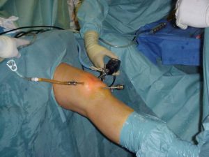 Артроскопия предполагает проведение операции, при которой работу хирурги ведут через два маленьких прокола диаметром до 7 мм. Процедура предполагает использование артроскопа, который состоит из специального оптического устройства и видеокамеры, передающей изображение на монитор. В один прокол вводится прибор, а через другой проводится операция.