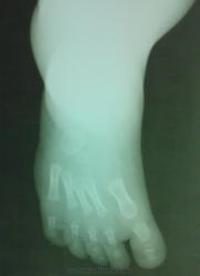 Не знаю ренгеновских признаков КОСОЛАПОСТИ, и знать не желаю! Ваша задача определить: все ли пальцы есть, нет ли каких-то особенностей ( типа доп. костей). То, что хирурги уходят от отвественности за диагноз, за счет рентгенологов - давно известно:"ты мне диагноз поставь - а, я тогда лечить буду!" Этот снимок - просто для "ИСКЛЮЧЕНИЯ ЧЕГО-НИБУДЬ!"