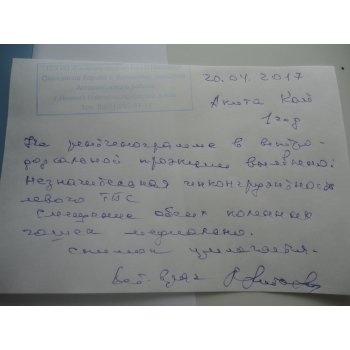 "официальное заключение" врача у них уже на руках) с диагнозом, подписью врача и печатью клиники.