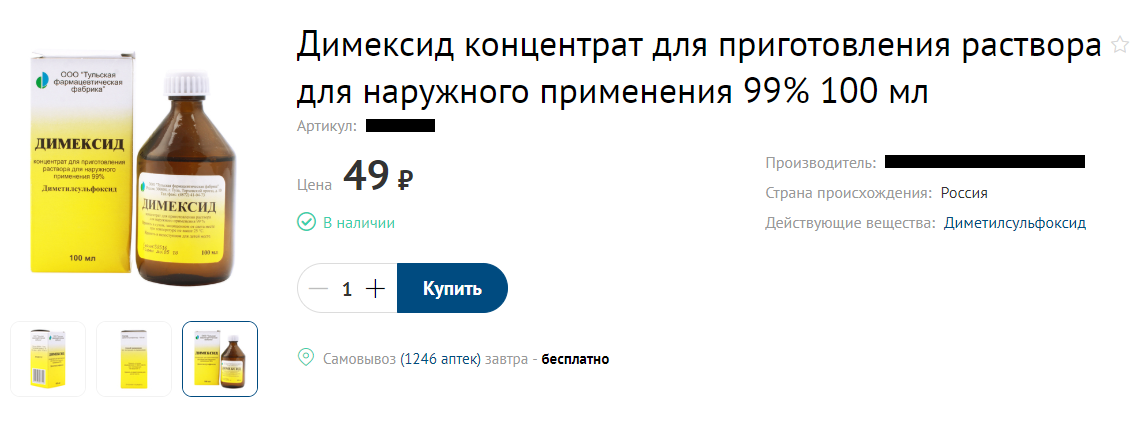 Димексид продается в любой аптеке, стоит недорого и отпускается без рецепта