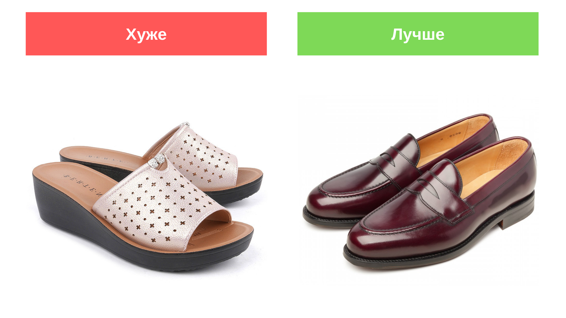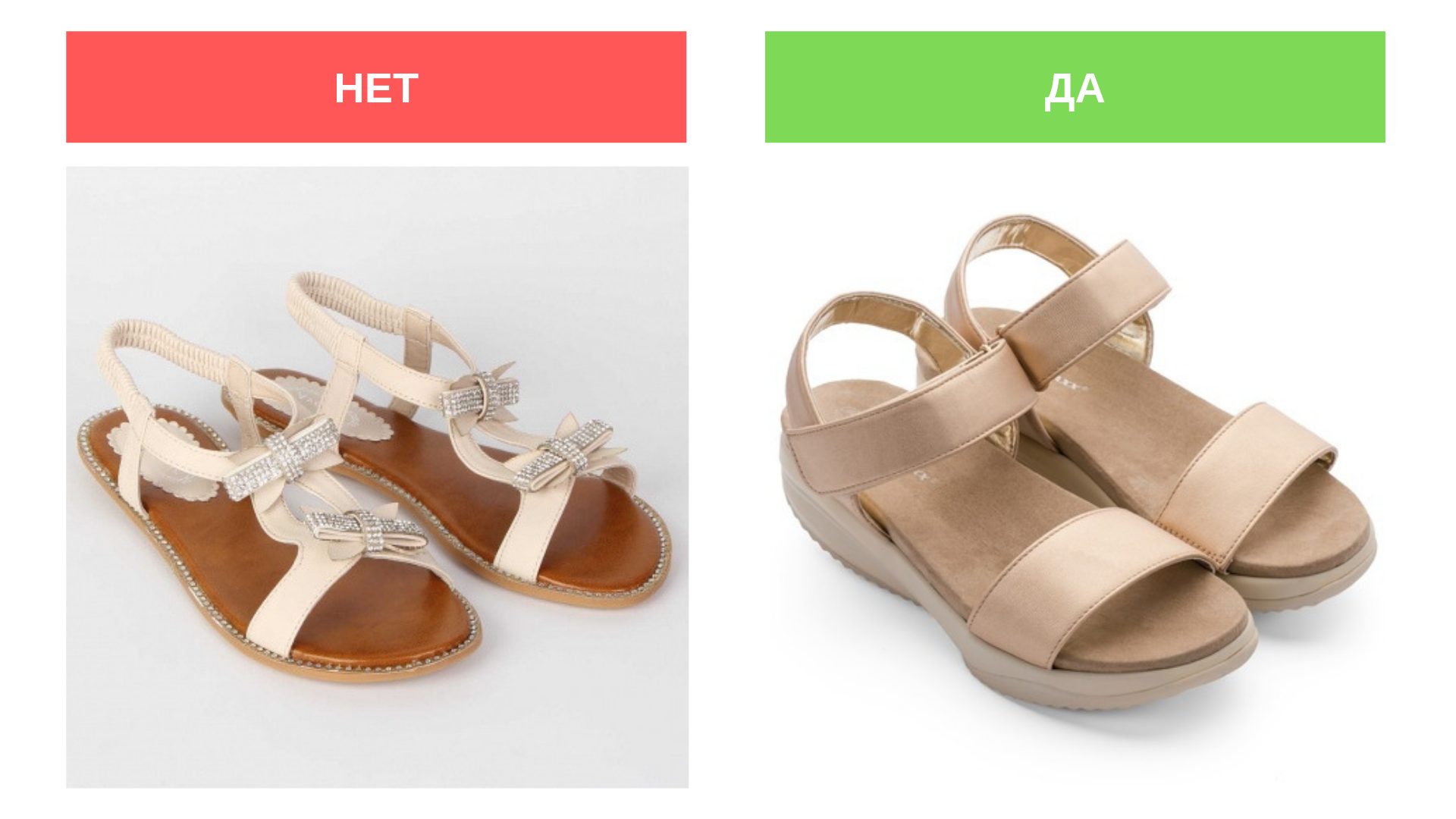 Желательно носить обувь с удобной пяткой и высокой задней стенкой, а не открытые босоножки, вьетнамки или сандалии.
