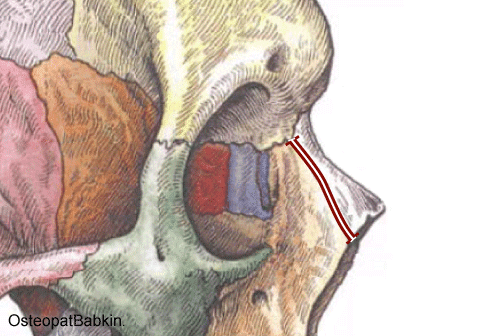 Для остеопатической коррекции твердого нёба важно знать, что со стороны ротовой полости верхняя челюсть (её нёбный отросток) покрывает нёбную кость.
