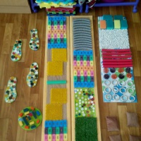 - Подросток сидит на стуле, под ногами коврик. Пальцами ног нужно сложить подстилку гармошкой, затем расправить ее ровно. Для усложнения задания используйте вместо толстого ковра салфетки, головные платки.