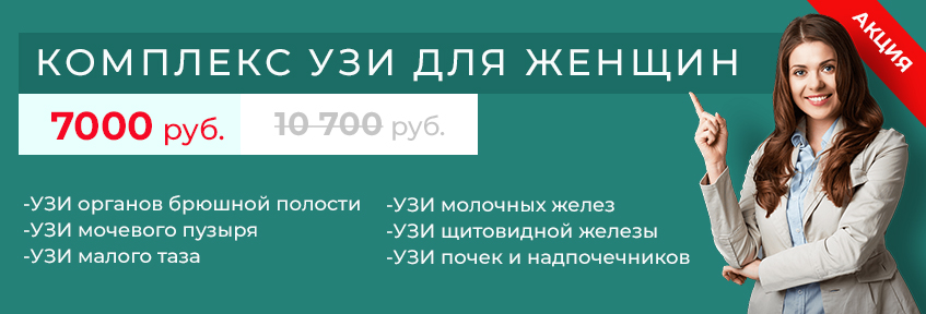 | Здоровье женщины (УЗИ органов брюшной полости, Узи мочевого пузыря, УЗИ органов малого таза УЗИ молочных желез, УЗИ щитовидной железы, УЗИ почек и надпочечников) | 7000 |
