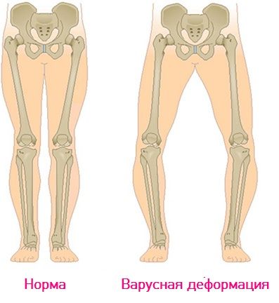 Варусная деформация стопы схожа с косолапостью, но эта два различных заболевания - косолапость – врожденная патология, а варусная установка стоп - приобретенная. У новорожденных до 3 месячного возраста может быть варусная установка стоп и это считается нормой (может возникать из-за гипертонуса мышц новорожденного).