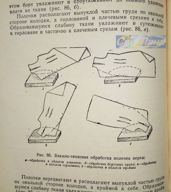 Чтобы придать изделия необходимую форму как сами полочки верха, так и бортовые прокладки подвергаются ВТО (влажно-тепловую обработку).