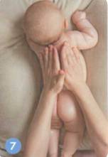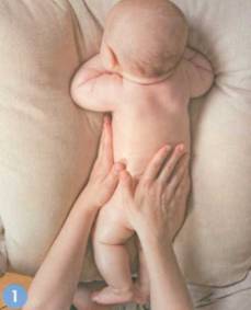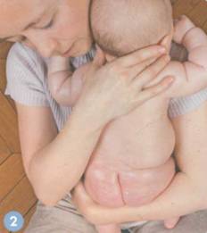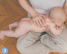Для полного массажа спины лучше всего положить ребенка на животик на подушку перед собой (фото 1). Если ему это не нравится или если он еще плохо держит головку, прижмите его к себе (фото 2) или уложите себе на колени (фото 3), если вы сидите или полулежите.