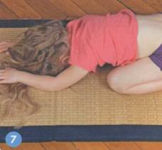 Положите руки в ту же позицию в верхней части спины (фото 7). На этот раз ведите вверх и обнимите плечики двумя руками (фото 8). Затем скользите по ручкам до кончиков пальцев и дальше в пространство.