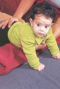 - Лежащего на спине ребёнка обхватывают с боков и со спины своими руками на уровне его груди, поднимают осторожно на несколько секунд и опускают. То же самое из положения на животе.