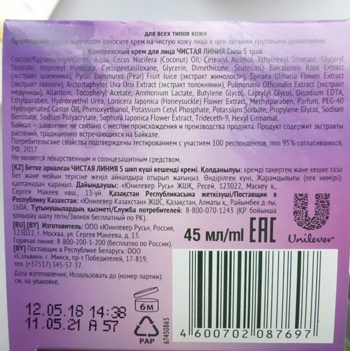 Состав крема чистая линия для лица для сухой кожи - фото презентация