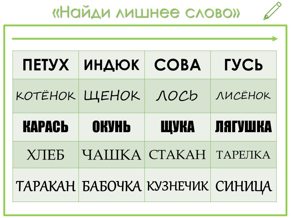 В каждом из этих рядов есть одно лишнее слово найди его - фото презентация