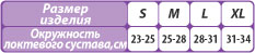 | Обхват локтевого сустава, см. | 23-25 см. | 25-28 см. | 28-31 см. | 31-34 см. |