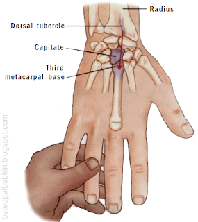 Рис. Пальпация головчатой кости (os capitatum) в активном тесте.