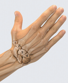 Рис. 1—ладьевидная кость, 2—полулунная кость, 3—трёхгранная кость.