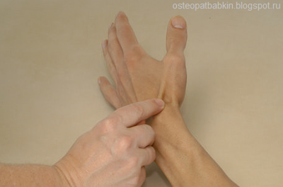 Рис. Пальпация запястно-пястного сустава большого пальца.
