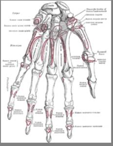 ![]() | 1. Кости запястья 2. пястные кости 3. фаланги пальцев |
