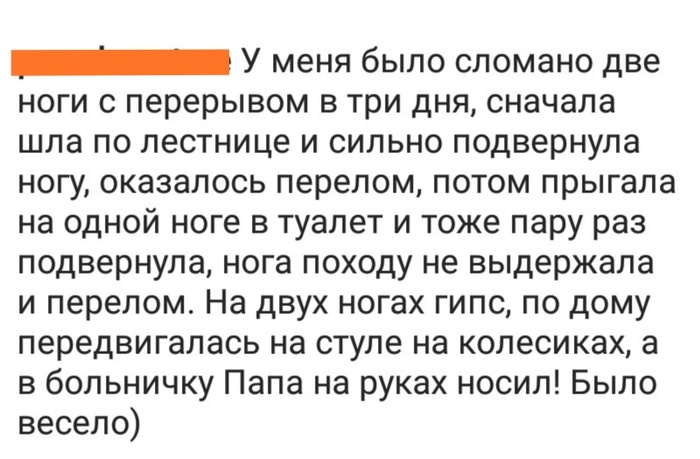 Наутро бабушка рассказала, что видела сон про меня на приёме, на котором врач сказал, что меня просто укусил комарик (на больном месте действительно была припухлость, похожая на прыщ от укуса). Но боли на следующий день не прекратились, были вызваны родители и они оперативно повезли меня из Белоострова в Сестрорецк, в ближайший травмпункт. Сделали рентген и вот тут я реально офигел - закрытый перелом правой ключицы.