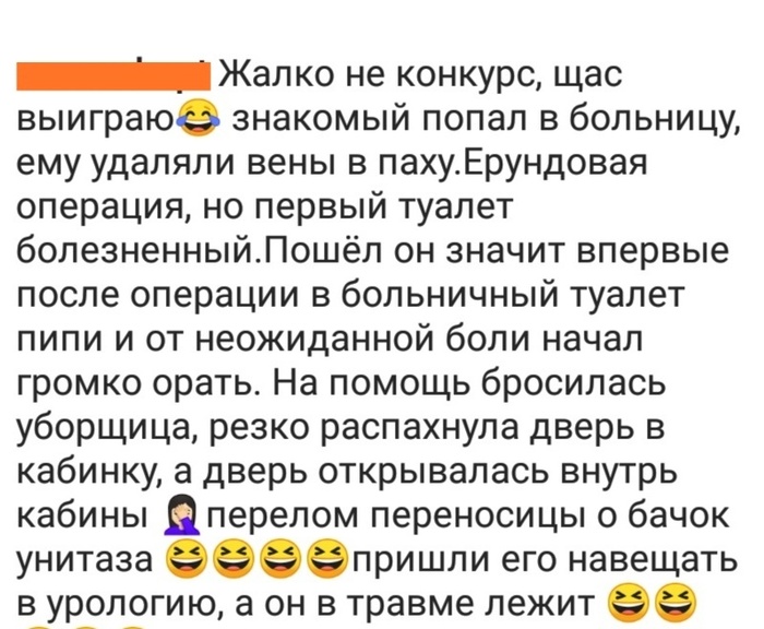 Вывод: Мужики не терпите, сразу едьте в больницу .