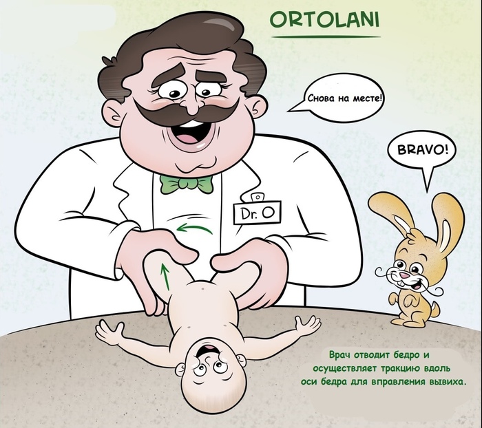 Речь идет именно об ощущении – примерно как толчок (перескакивание) головки бедра в момент вывиха или вправления. К сожалению, работы итальянского ортопеда Марино Ортолани были неправильно переведены на английский, а затем и русский языки, в связи с этим многие авторы ведут речь о щелчке (click). Это в корне неверно. Внесуставные и внутрисуставные высокотональные щелчки, идущие, как правило, из области коленного сустава и области вертелов бедра не имеют диагностической ценности.