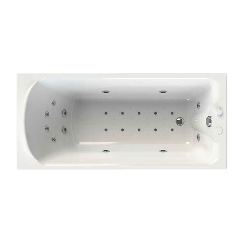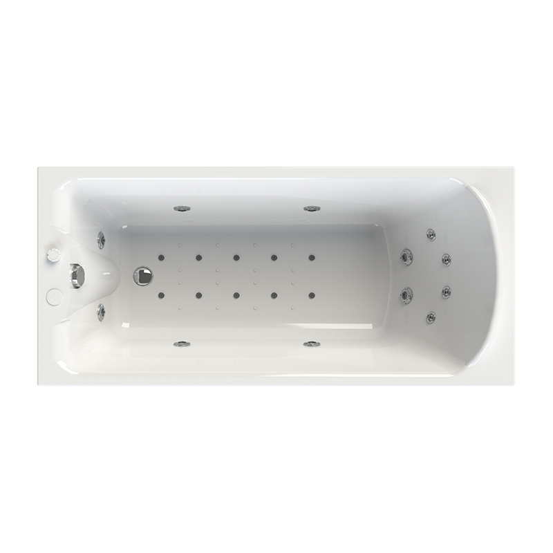 Данная модель сантехнического оборудования изготавливается с помощью новейших технологий и в соответствии с мировыми стандартами, что делает ее безопасной, многофункциональной и долговечной. Обладая прямоугольной конструкцией и современным изысканным дизайном, она может стать превосходным украшением ванной комнаты, которое не займет много места, но при этом будет отлично выполнять свое назначение. Компактная гидромассажная ванна прямоугольной формы в своей комплектации имеет 12 гидромассажных форсунок, с помощью которых образуются вихреобразные струи воды, обеспечивающие потрясающий массаж тела, который тонизирует организм и наполняет его энергией, а также дарит заряд бодрости и положительных эмоций. Благодаря вместительному пространству внутренней чаши, человек может удобно расположиться внутри ванны и получать максимальное удовольствие от комфортного и приятного принятия водных процедур.