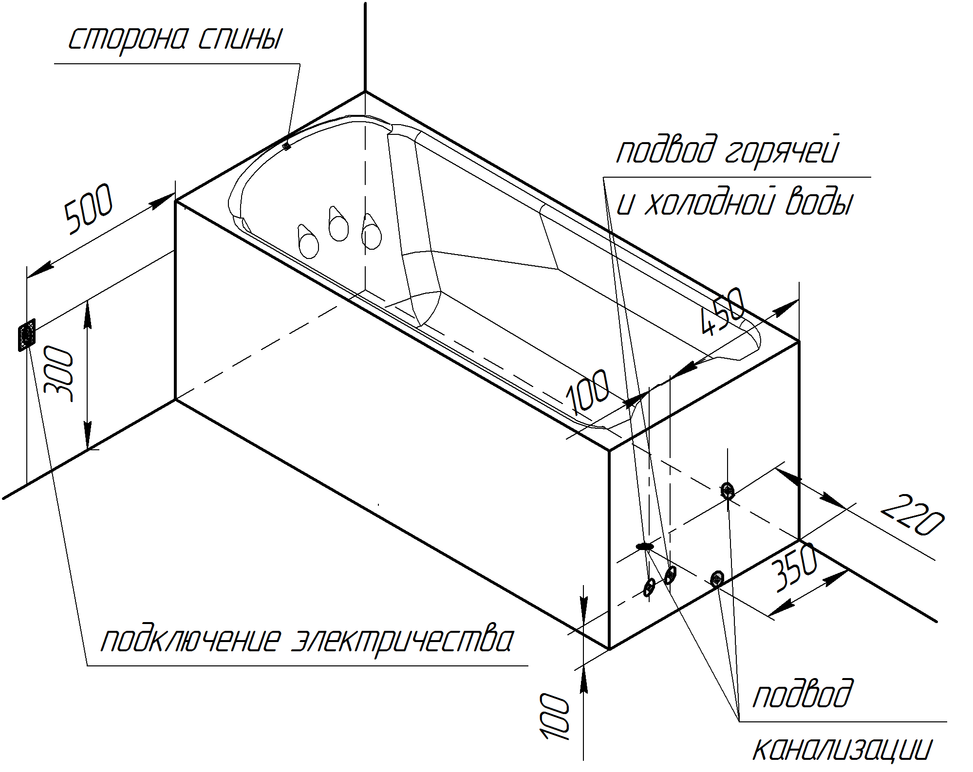 | Ванна акриловая размер от 170 см (без гидромассажа) | 700 руб. | 700 руб. + 300 руб./этаж |