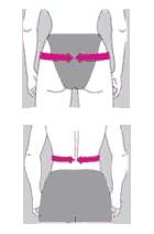 Сначала поместите левую кисть в левую петлю на внутренней поверхности бандажа. Затем поместите правую кисть в правую петлю на наружной поверхности бандажа и оберните его вокруг талии. Создайте умеренное натяжение и зафиксируйте бандаж на передней брюшной стенке с помощью застежки-липучки так, чтобы верхний и нижний края обоих частей застежки находились друг напротив друга, соответственно.