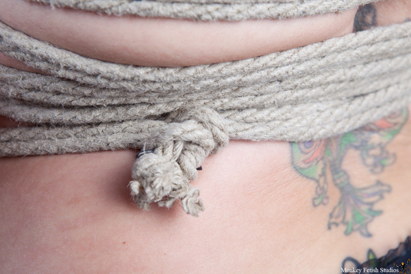 Шаг 4. Оборачиваем вокруг талии в обратном направлении с конец веревки и возвращаемся обратно к груди.