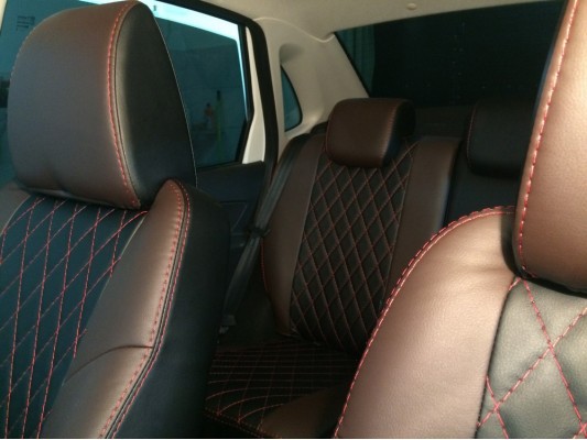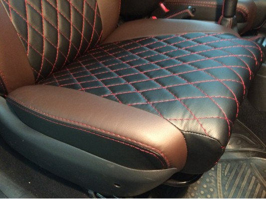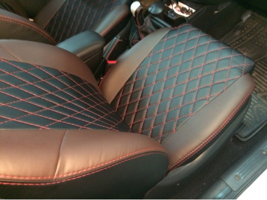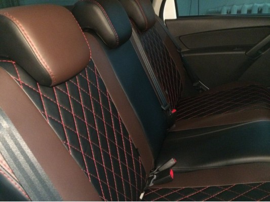 По своим свойствам экокожа почти не отличается от натуральной, а по прочности даже превосходит ее. При этом цена чехлов значительно дешевле. Установку чехлов из экокожи проводят наши квалифицированные мастера в Москве. Обращаем ваше внимание на то что авточехлы не затрагивают функционал, скорость и силу срабатывания заводских подушек безопасности
