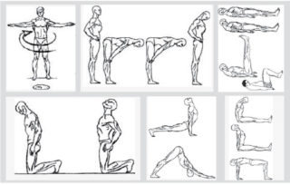 Каждое упражнение выполняется по 8 раз с фиксацией в крайнем повёрнутом положении на 10-15 секунд.
