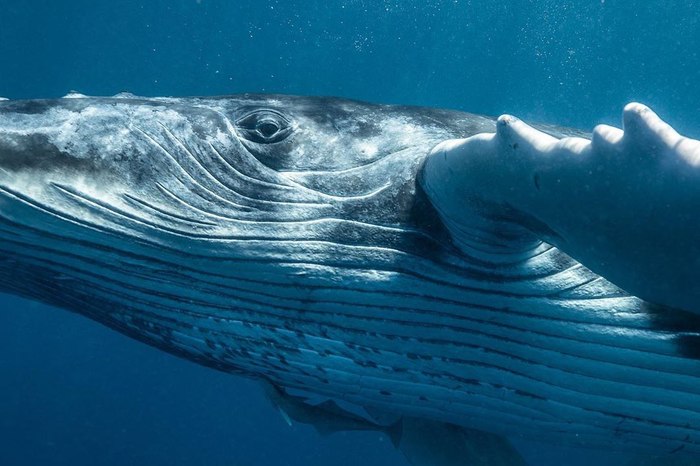Плывущие без дела горбатые киты, в отличие от более занятых, не слишком заботятся о дыхании и остаются под водой более получаса, едва шевеля плавниками.