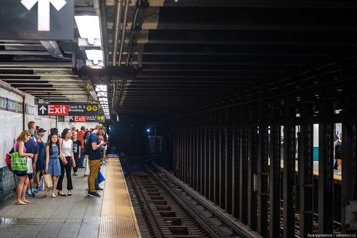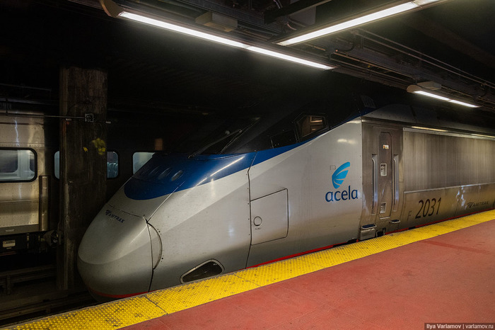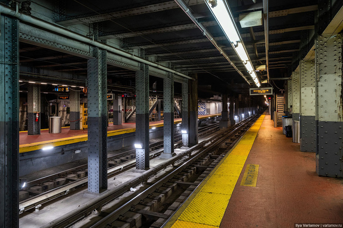03. А вот так выглядит станция на вокзале. Американские вокзалы и станции метро — это мрачное уныние. Нам это видеть странно. Всё очень тесное, старое и грязное, повсюду ржавчина и подтеки. бррр