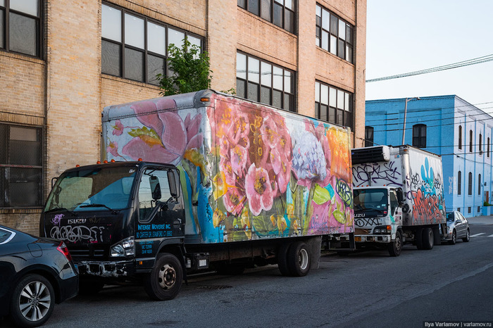 46. Если где-то на окраине города появляется китайский грузовик, его сразу вандалят. Чтобы сберечь машину, владельцы грузовиков заранее заказывают художественную роспись кузова.