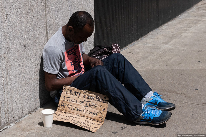 26. Попрошайка говорит, что он ветеран боевых действий, ездил в Афган и Ирак. Может, и так.