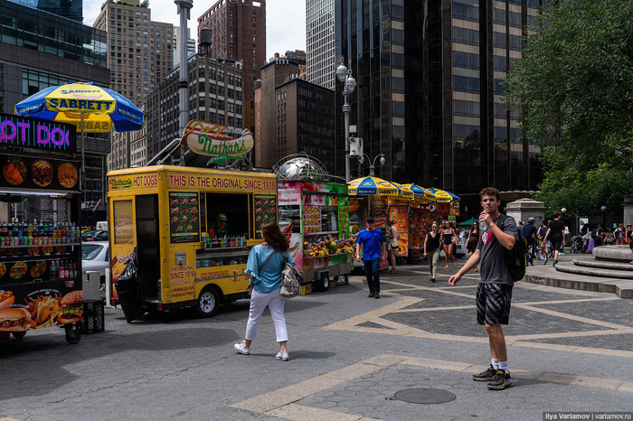 28. Около входа в Центральный парк куча отвратительных ларьков. Они продают какую-то мерзкую вонючую еду. Кто вообще это покупает? Всё жареное в старом масле, очень вредное, и почти никогда у этих киосков нет покупателей. Как они только не разоряются?