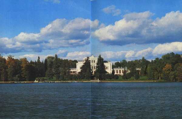 На овальном острове пруда выстроена кирпичная псевдоготичная кирха для княгини Марии Федоровны.