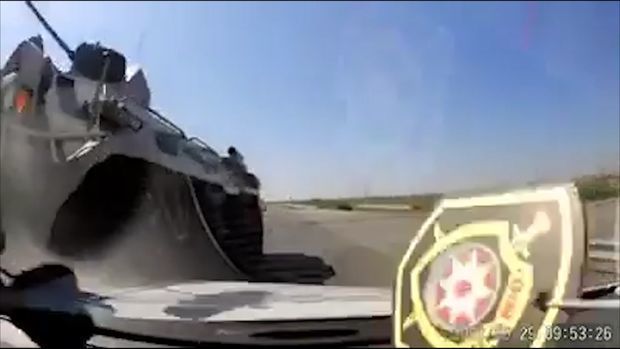 Видео из Евлаха: смотрите как БТР таранит легковушку - ВИДЕО