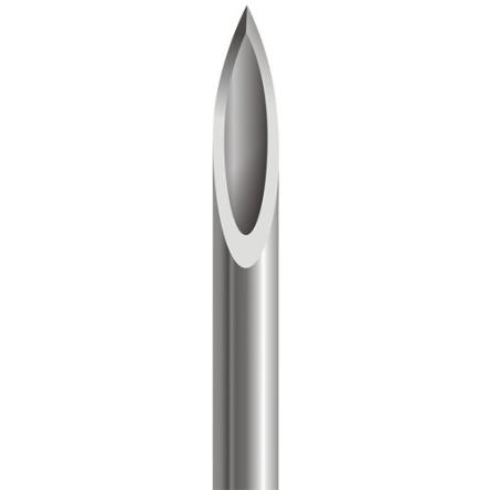 Игла длиной 90 мм изготовлена из высококачественной нержавеющей стали, дистальный конец имеет трехгранную заточку (тип “ланцет”).