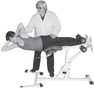 - Пациент наклоняет голову вперед, стараясь достать подбородком до груди. Руки располагаются на затылке и оказывают давление на голову, которую нужно пытаться поднять.