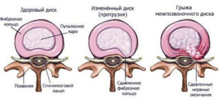 При остеохондрозе, спондилезе, в результате травмы и по многим другим причинам диски между позвонками шейного, грудного или поясничного отдела изменяются. Они теряют упругость, становятся тоньше, в результате расстояние между позвонками уменьшается и при движении диск уже не компенсирует нагрузку. В этом случае начинает деформироваться и сам позвонок. Диски разрушаются: пульпозное ядро, в норме расположенное по центру, смещается в сторону, теряет форму, выходит за границы позвонка или вовсе отделяется. Это заболевание и называют грыжей.