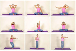 - Сидя в позе лотоса на вдохе вытягивают позвоночник максимально вверх, тянутся затылком в потолок. На выдохе спину расслабляют и стараются максимально втянуть пупок. Выполняют упражнение 12 раз, но при этом стараются удлинить вдох и выдох.