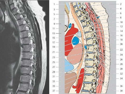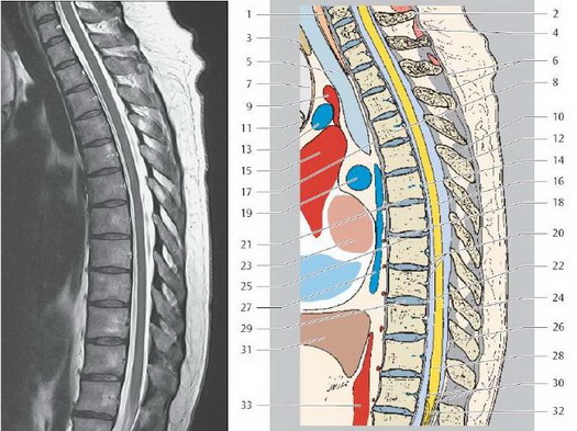 МРТ грудного отдела позвоночника (сагиттальная проекция, Т1 ВИ)