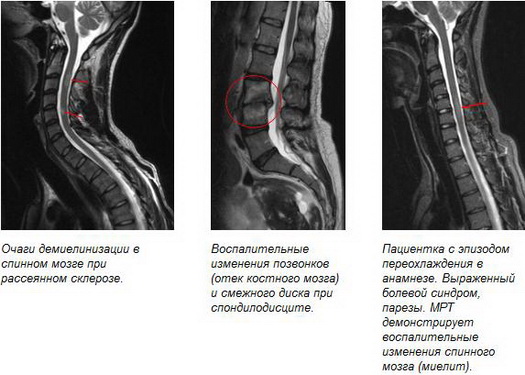• воспалительные заболевания структур позвоночного канала, как специфического, так и неспецифического характера, неинфекционных воспалительных заболеваний (анкилозирующий спондилоартрит (болезнь Бехтерева), ревматоидный артрит, синдром Рейтера);