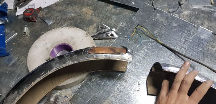 Снял наклейки с бензобака и обработал шлифмашинкой.