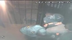 Фрагмент видео с камер наблюдения ОП "Металлургический", на котором видно, как сотрудники полиции Берляков и Казанцев без видимой причины валят Сергея Старцева на пол, заломив ему руку за спину. По словам Старцева, руку ему сломал именно Сергей Берляков: