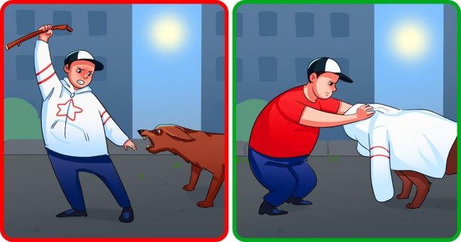 Надеемся, что собака успокоится и вас не тронет. Но если пес все же напал, то помните несколько правил: